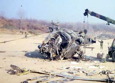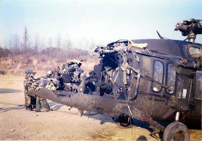 CPT Lucas, already suffering from a wound to the right arm on the first go-around, was killed when 5 rounds fired from above smashed through the windshield and struck him in the head and chest. A/C crashed around 0640 just on top of Amber Belair Hill, breaking in half and the M/R blades fell over the cliff and into the water and rocks below. |