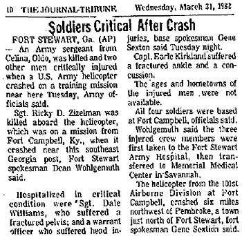 A/C was on an airmobile raid on the Calivigny Barracks which housed Cuban soldiers. Just before the helicopter landed near the Cuban held compound, the craft was hit by SA fire from the ground and crashed. Grenier