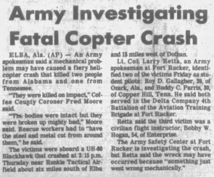 was hit by the rotor. Slater and Lannon were killed by flying rotor debris. |