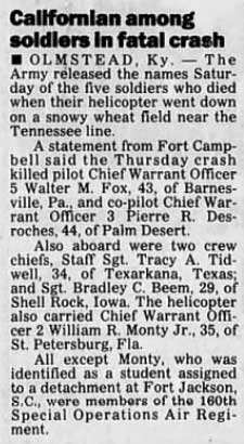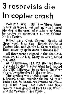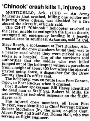 NOTE: CW2 Nichols, SPC Bennett and SPC Duncan were from B/7-158 AVN (KS USAR). CW4 Carter was from CO ARNG and SGT Hamburger from NE ARNG. |