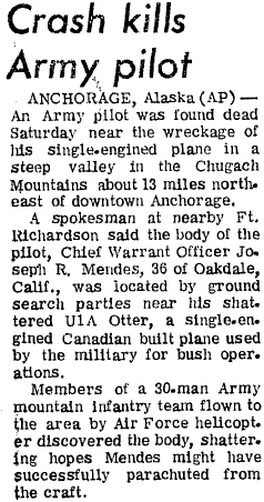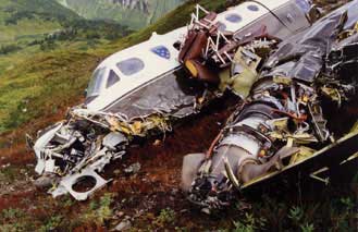Crashed into a mountain range, at an elevation of 2600' in the Chilkat Range, on approach to the Juneau airport. |