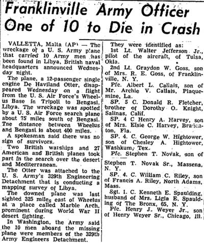 A/C on a routine tactical recon mission to Chester 2, crashed at approx 1030 hrs, wreckage found near Ousil. |