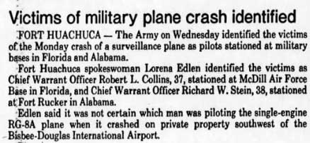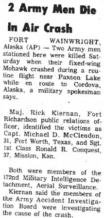 A/C departed airbase at 0135 hrs and crashed into a mountain in southern Colombia at approx 0400 hrs. Pentagon stated no evidence that narco-guerrillas shot down the plane. |