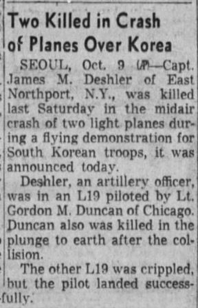 A/C flying tactical air control mission, lost in Pohang-Kigye-Angang-ni area. |
