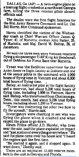A/C plummeted into a marsh of the state nature preserve near Ossabaw Island, while on a routine training mission. |