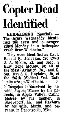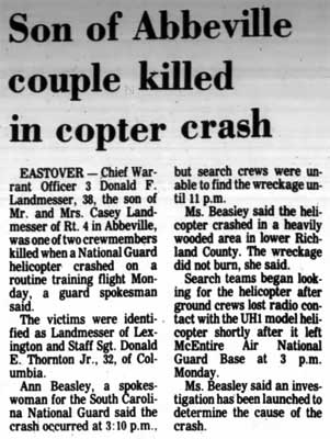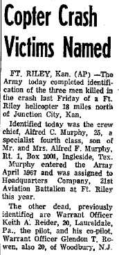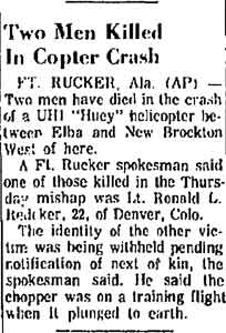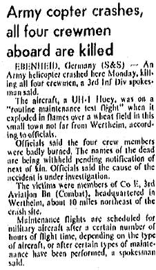 *Miller was the first helicopter fatality in the Indiana ARNG. |