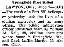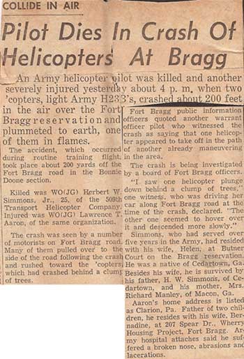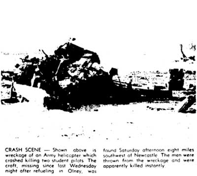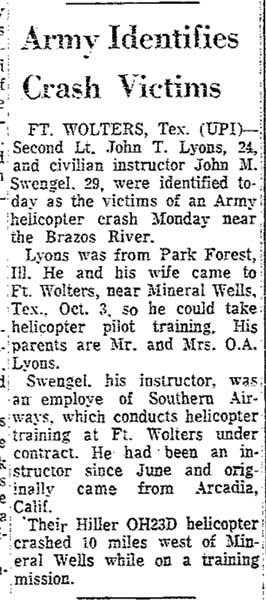 A/C crashed during routine training at Ft Wolters. |